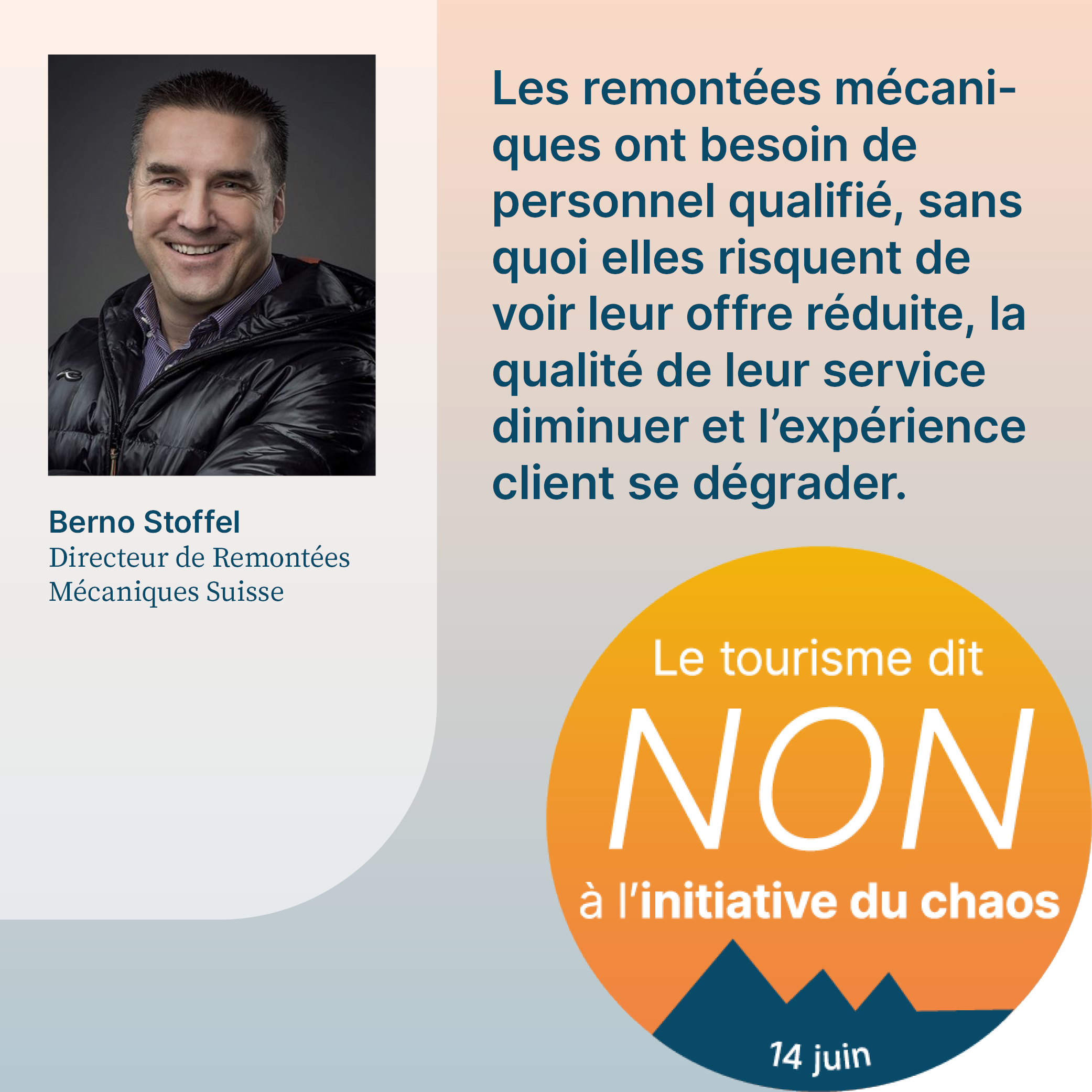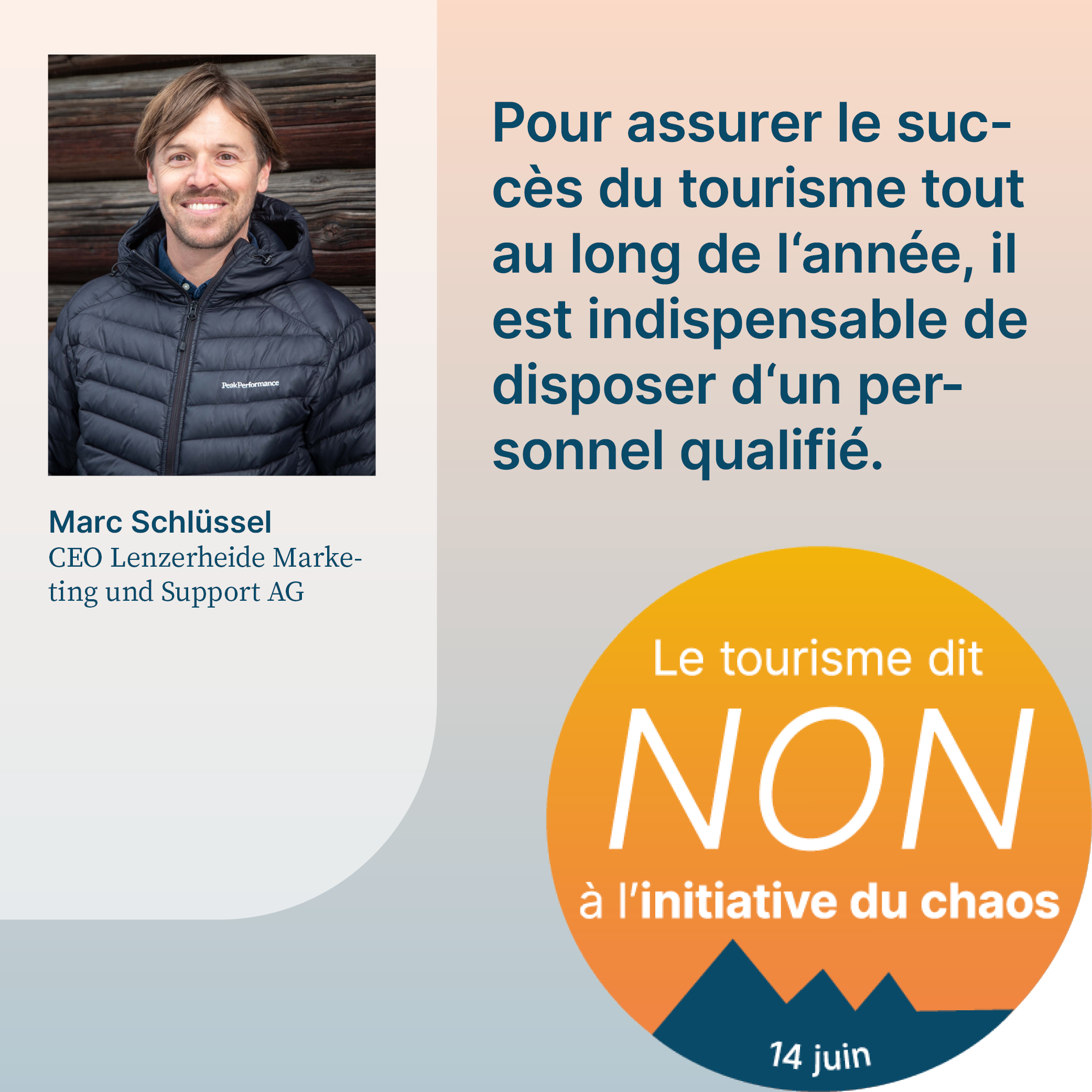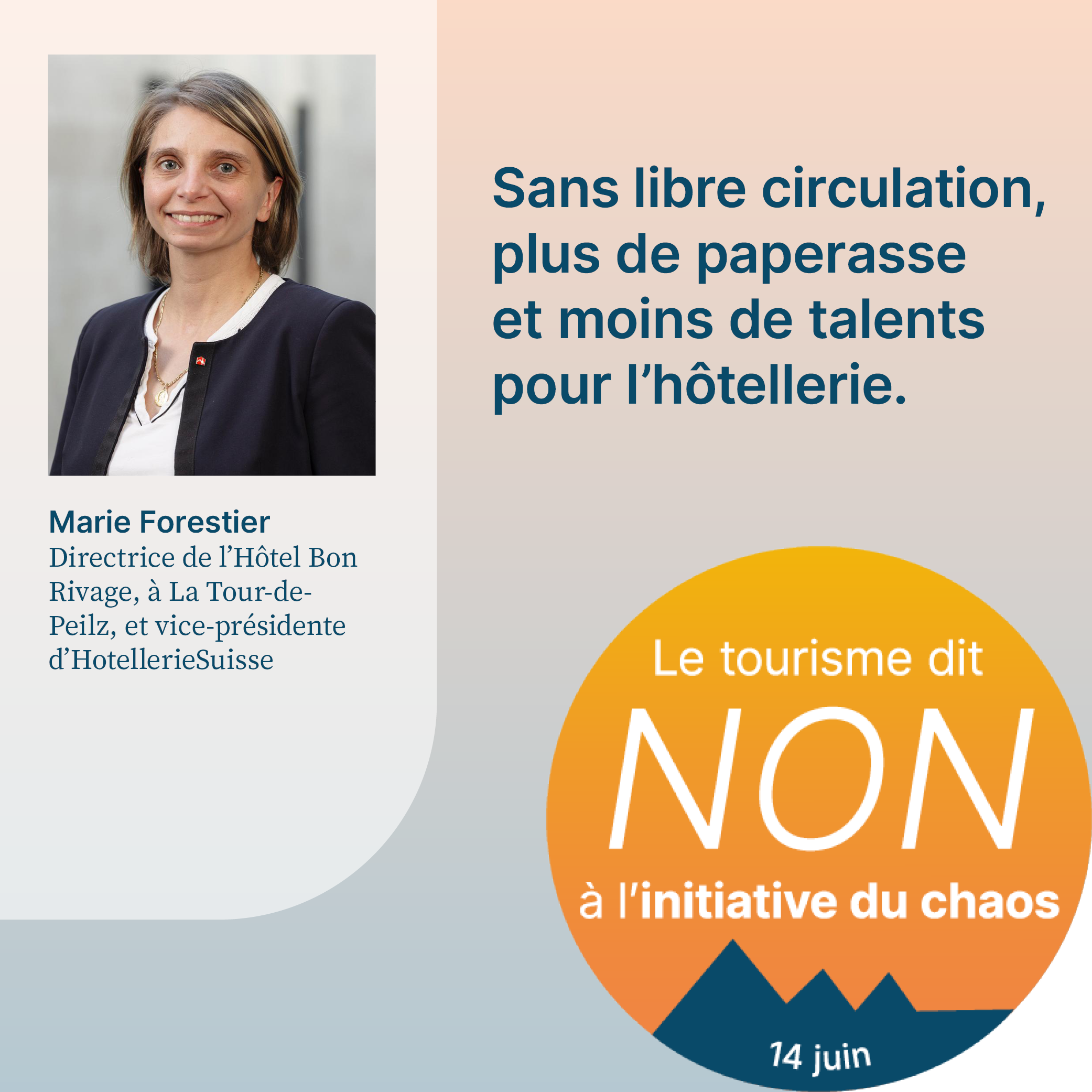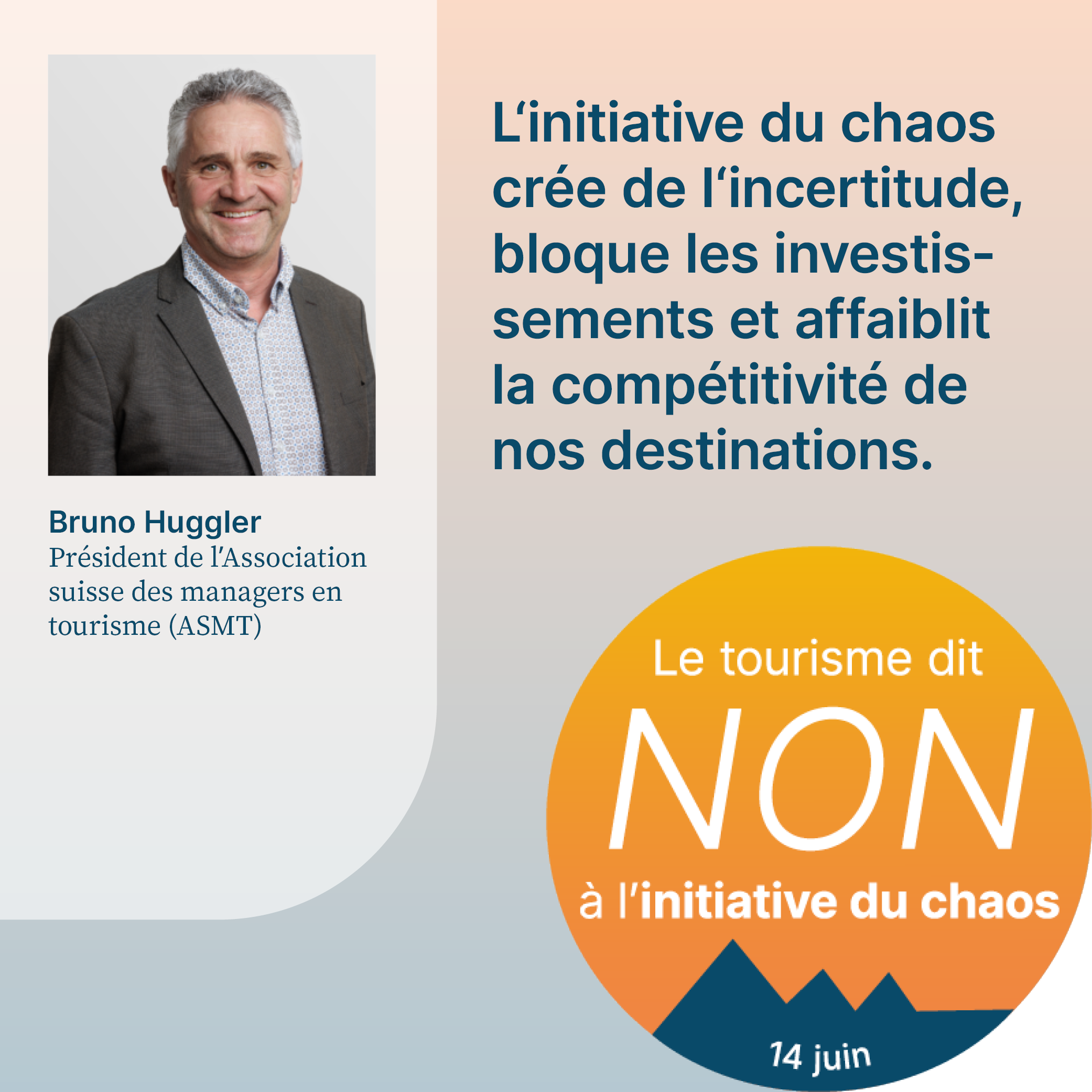 L’initiative du chaos, qui sera soumise au vote le 14 juin 2026, exige la fixation d’un plafond démographique arbitraire en Suisse. Cela aurait pour effet d’empêcher la migration liée au travail et de priver l’économie d’une main-d’œuvre qualifiée importante. Pour respecter le plafond de dix millions d’habitants, il faudrait également dénoncer l’accord sur la libre circulation des personnes (ALCP) avec l’UE. En raison de la clause guillotine, la dénonciation de l’ALCP entraînerait la caducité de tous les accords bilatéraux I. L’initiative met donc en péril la voie bilatérale de la Suisse dans son ensemble. Or, cette voie revêt une grande importance pour le tourisme. Le recrutement de personnel qualifié, les relations internationales de la Suisse et l’accès au marché intérieur sont menacés par l’initiative. Son acceptation causerait un préjudice considérable à l’ensemble de l’économie suisse, en particulier au secteur du tourisme, et provoquerait un chaos total. C’est pourquoi elle est qualifiée d’«initiative du chaos».