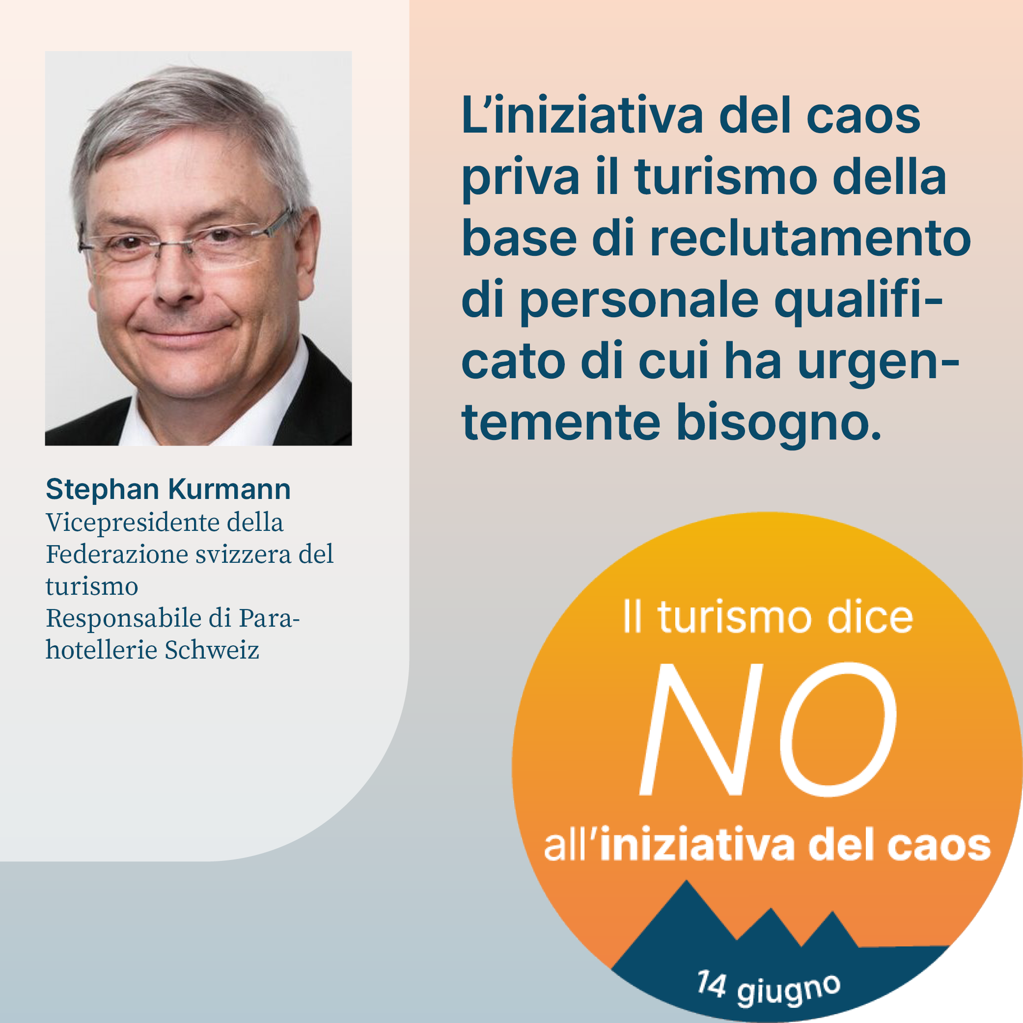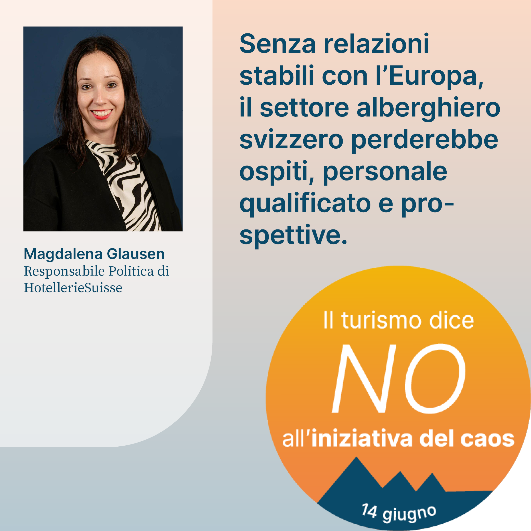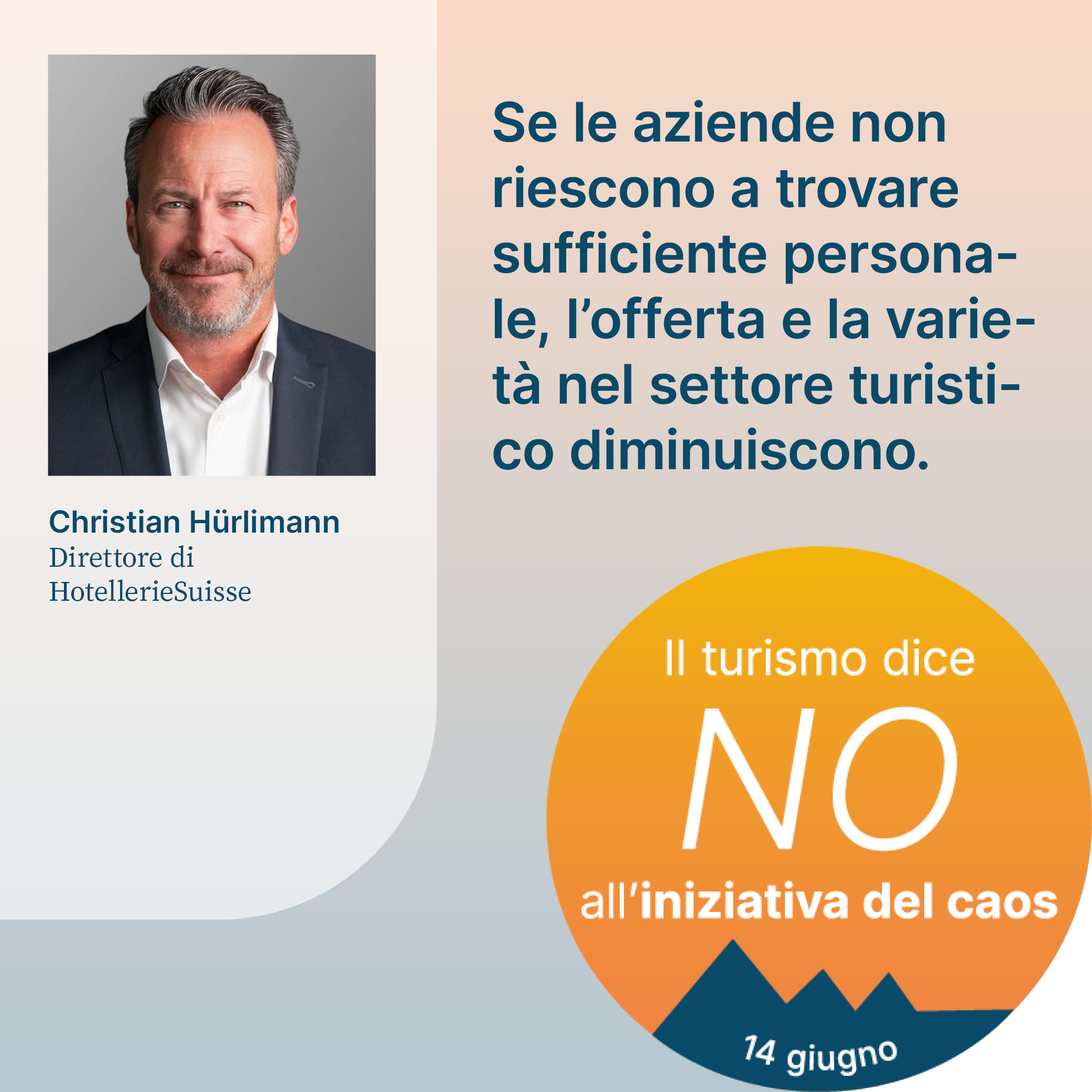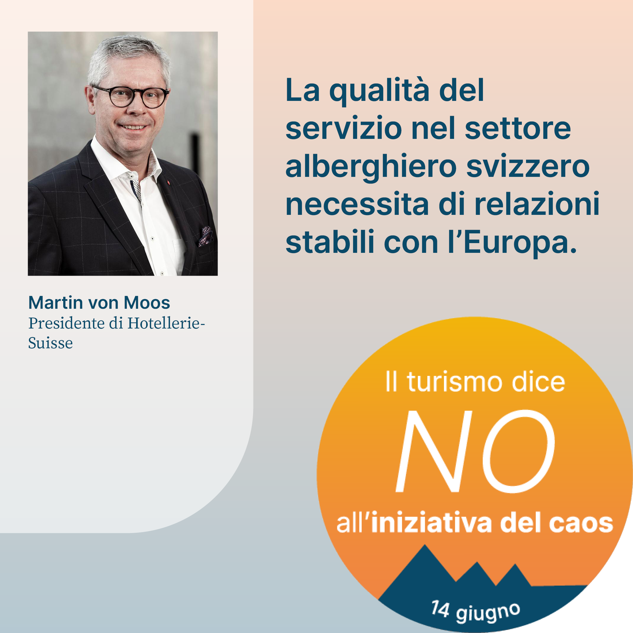 L’iniziativa del caos, che sarà sottoposta a votazione il 14 giugno 2026, prevede l’introduzione di un limite massimo arbitrario della popolazione svizzera con lo scopo di impedire la migrazione orientata al mercato del lavoro e priverebbe l’economia di importanti lavoratori qualificati. Per rispettare il limite massimo di dieci milioni, dovrebbe essere disdetto anche l’accordo sulla libera circolazione delle persone (ALC) con l’UE. A causa della clausola ghigliottina, in caso di disdetta dell’ALC diventerebbero nulli anche tutti gli accordi bilaterali I. L’iniziativa compromette dunque il percorso bilaterale della Svizzera nel suo complesso. Quest’ultimo è però di grande importanza per il turismo. L’iniziativa minaccia il reclutamento di personale qualificato, i collegamenti internazionali della Svizzera e l’accesso al mercato interno. La sua accettazione causerebbe quindi gravi danni all’intera economia svizzera, in particolare al settore turistico, e provocherebbe un grande caos. Per questo motivo è stata definita «iniziativa del caos».
