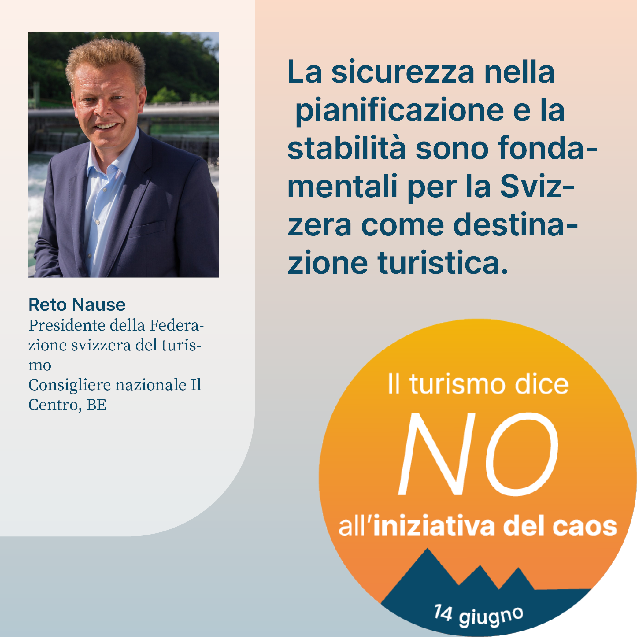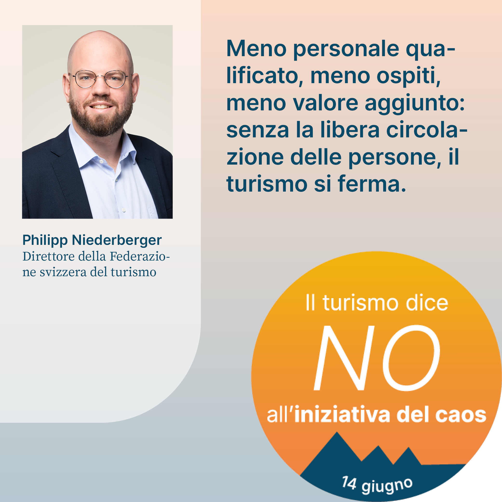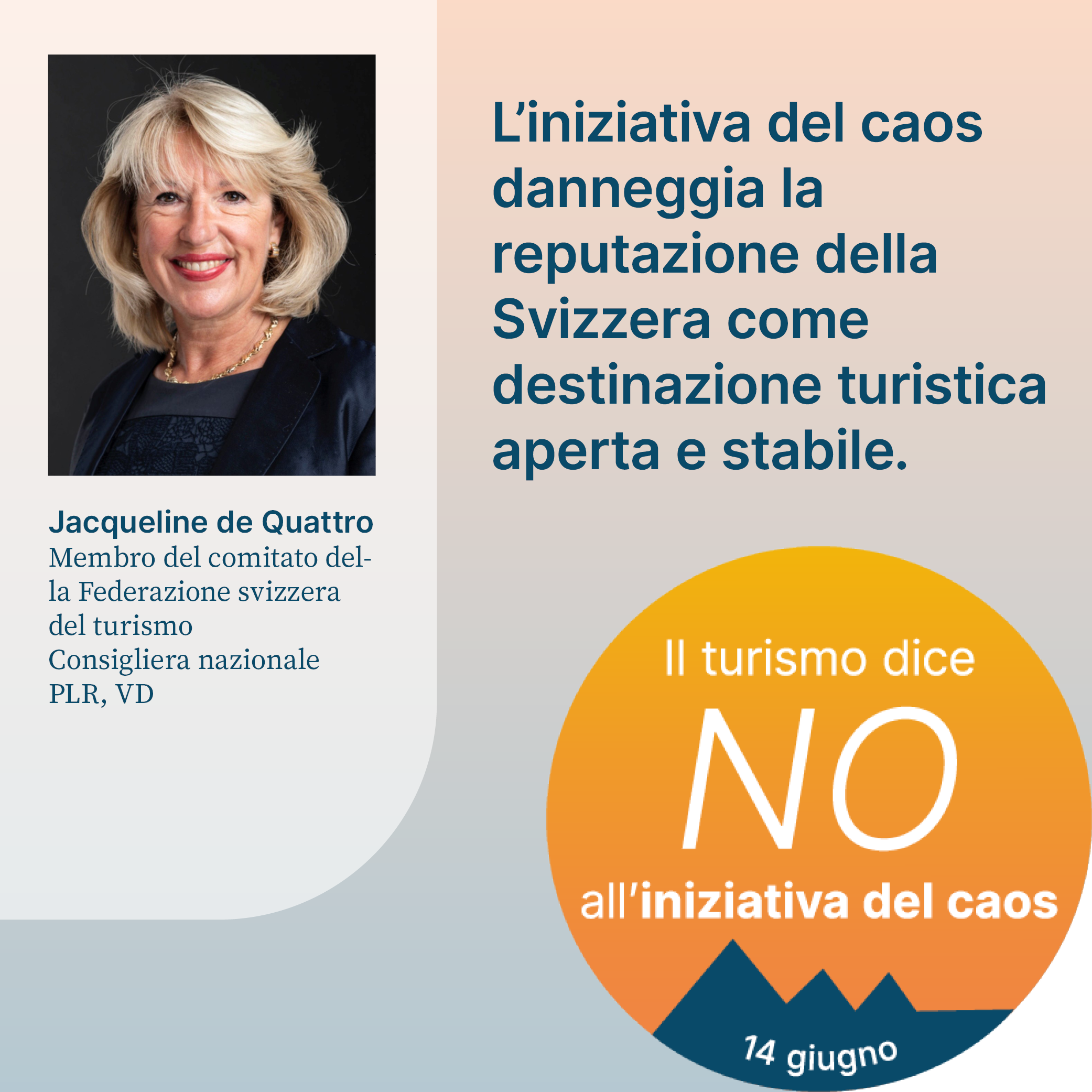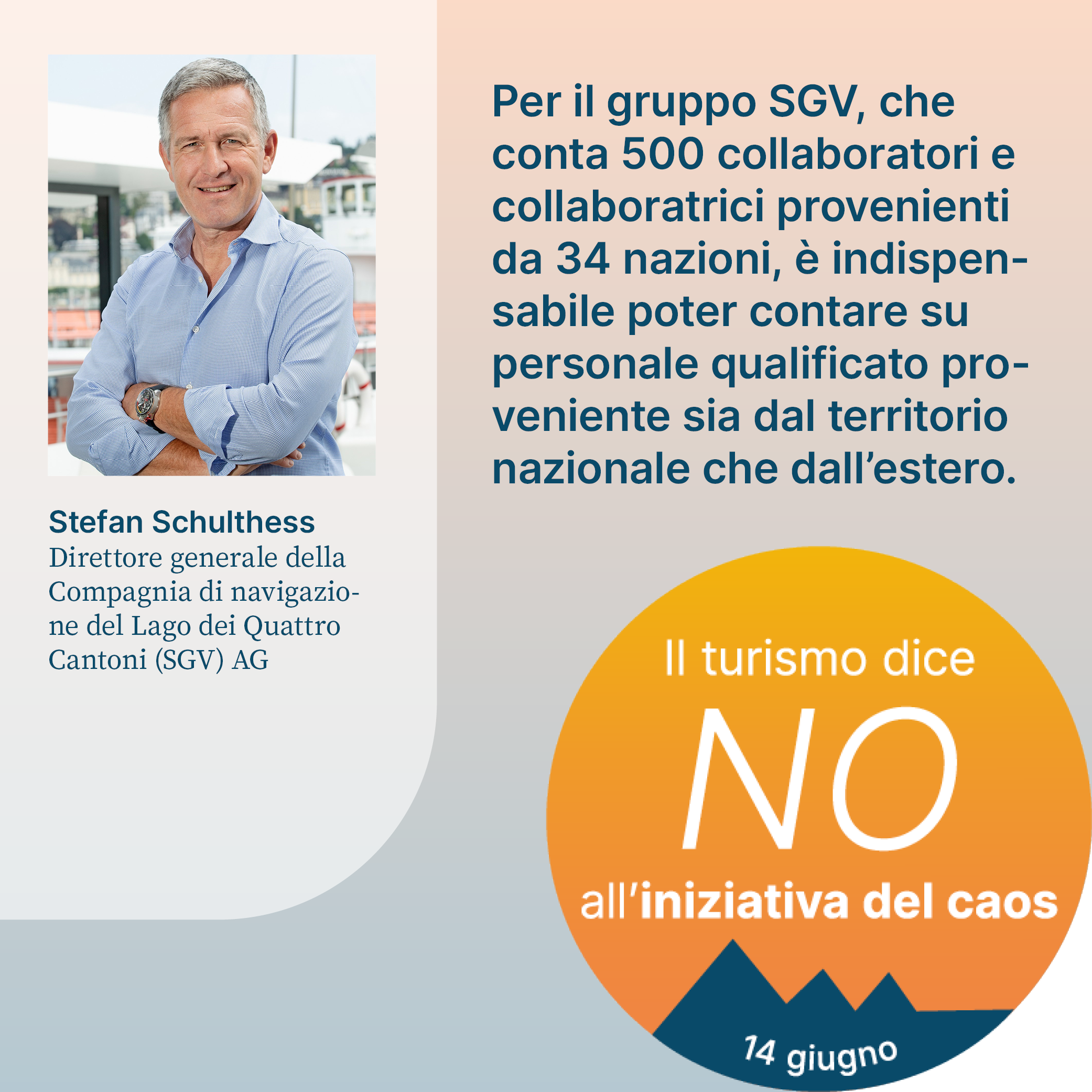 L’iniziativa del caos, che sarà sottoposta a votazione il 14 giugno 2026, prevede l’introduzione di un limite massimo arbitrario della popolazione svizzera con lo scopo di impedire la migrazione orientata al mercato del lavoro e priverebbe l’economia di importanti lavoratori qualificati. Per rispettare il limite massimo di dieci milioni, dovrebbe essere disdetto anche l’accordo sulla libera circolazione delle persone (ALC) con l’UE. A causa della clausola ghigliottina, in caso di disdetta dell’ALC diventerebbero nulli anche tutti gli accordi bilaterali I. L’iniziativa compromette dunque il percorso bilaterale della Svizzera nel suo complesso. Quest’ultimo è però di grande importanza per il turismo. L’iniziativa minaccia il reclutamento di personale qualificato, i collegamenti internazionali della Svizzera e l’accesso al mercato interno. La sua accettazione causerebbe quindi gravi danni all’intera economia svizzera, in particolare al settore turistico, e provocherebbe un grande caos. Per questo motivo è stata definita «iniziativa del caos».